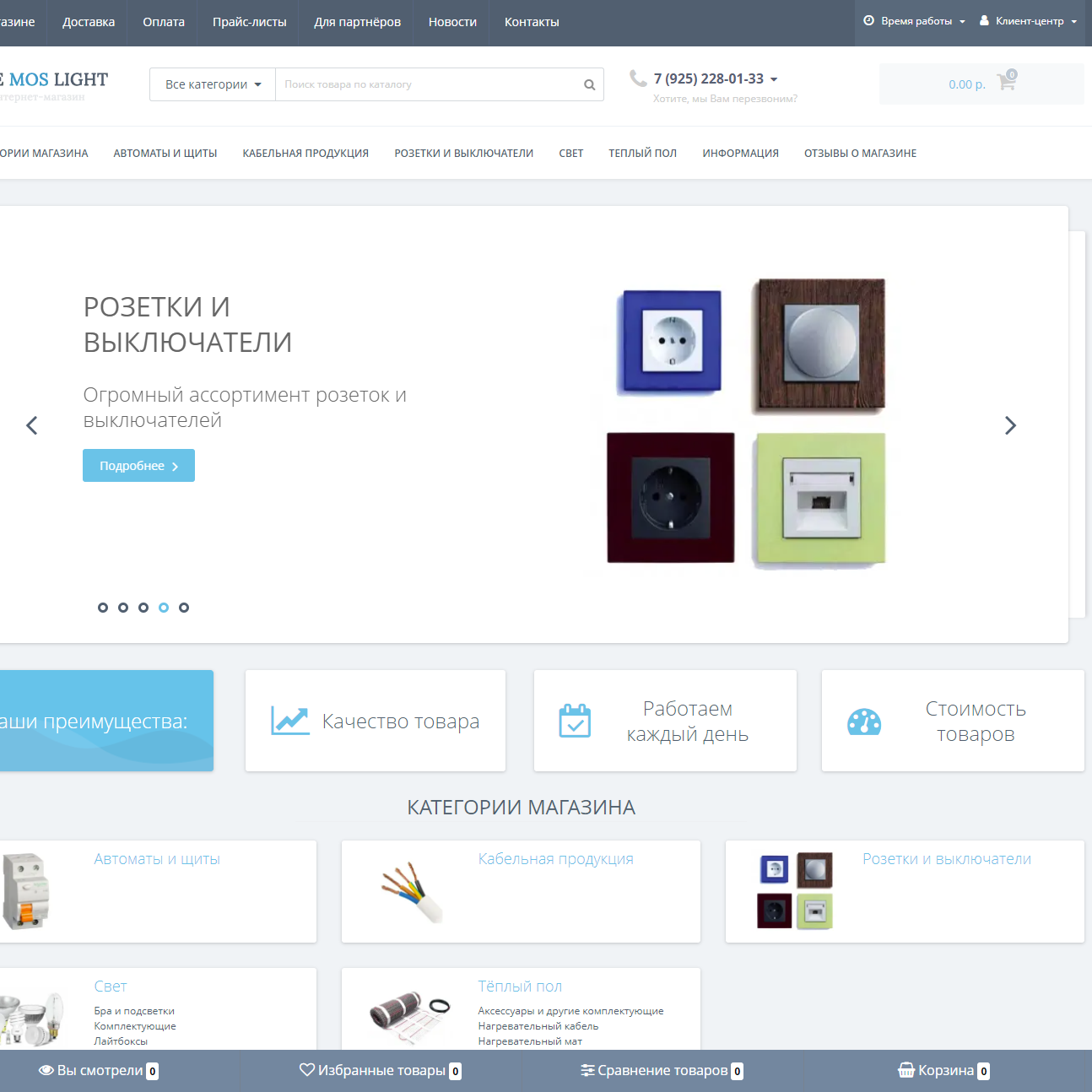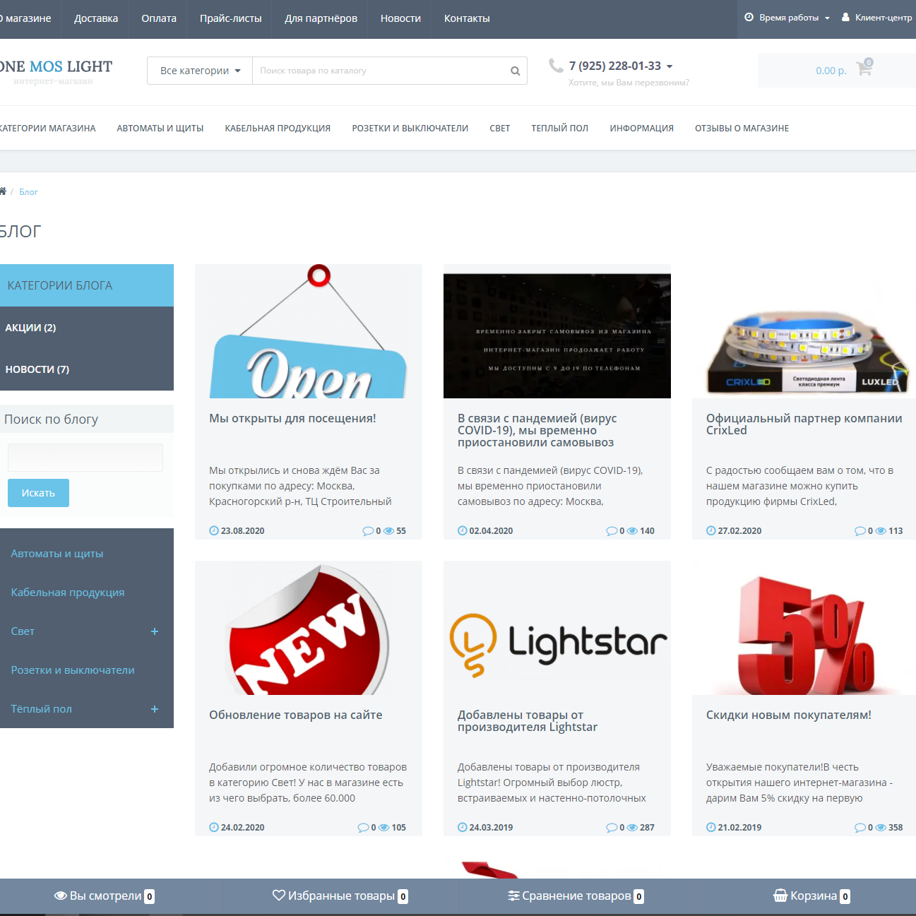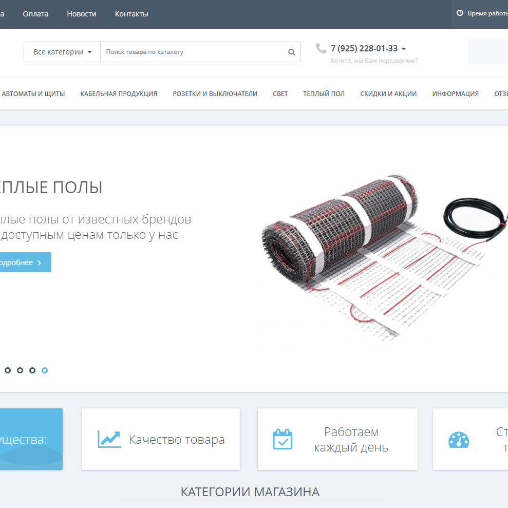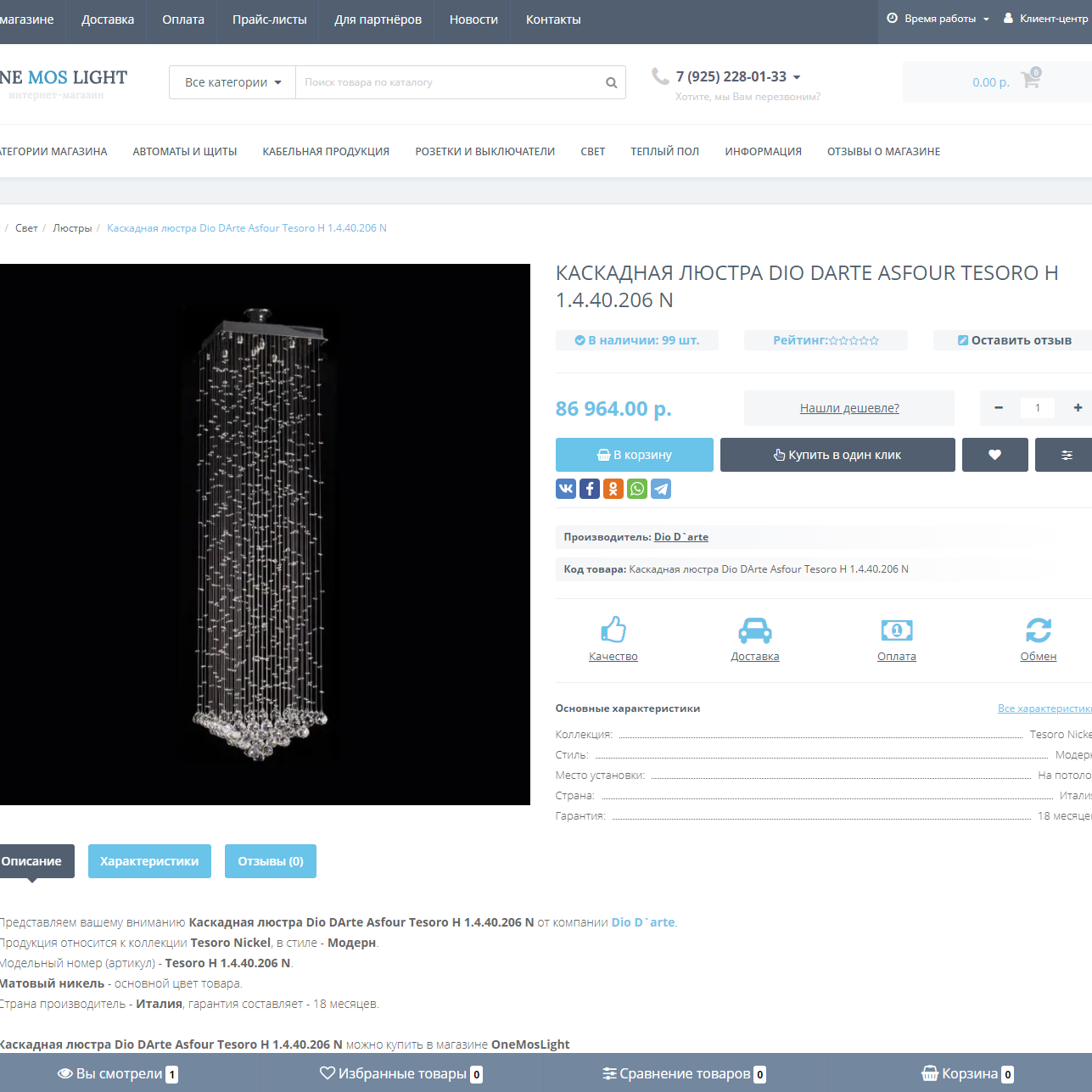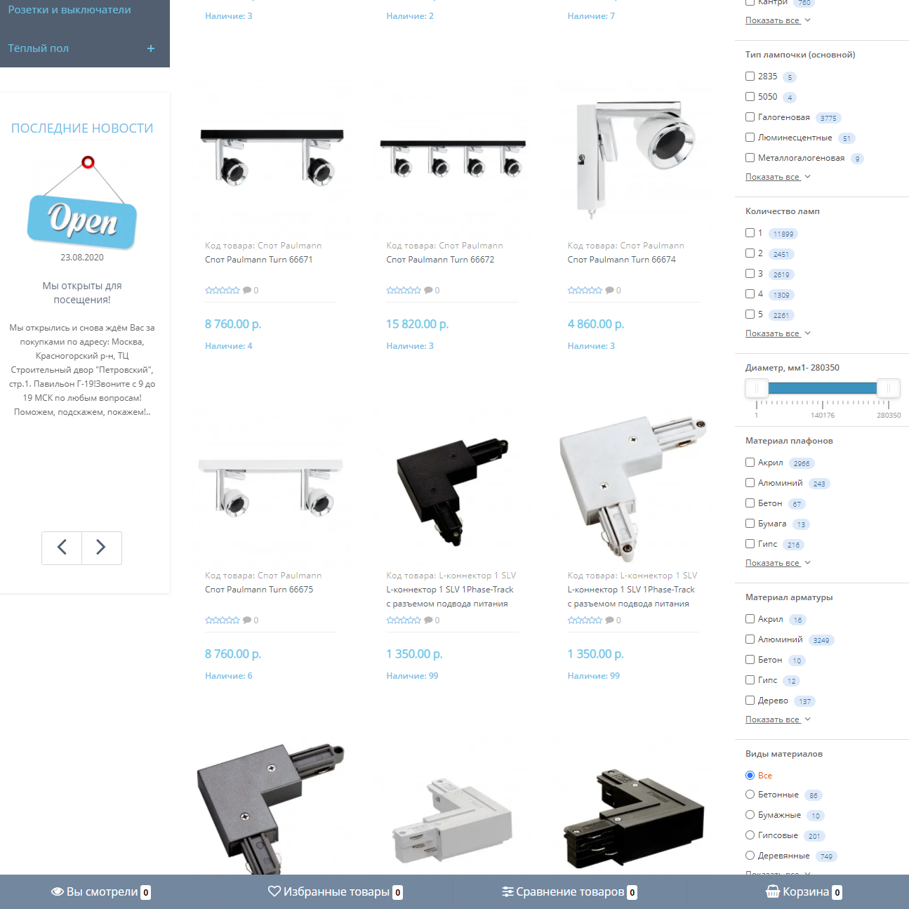 Интернет-магазин с более чем 50.000 наименований товаров. Автоматическое обновление товаров (в т.ч. цен, остатков), страницы, описание, новости, корзиной, доставкой и остальными опциями.