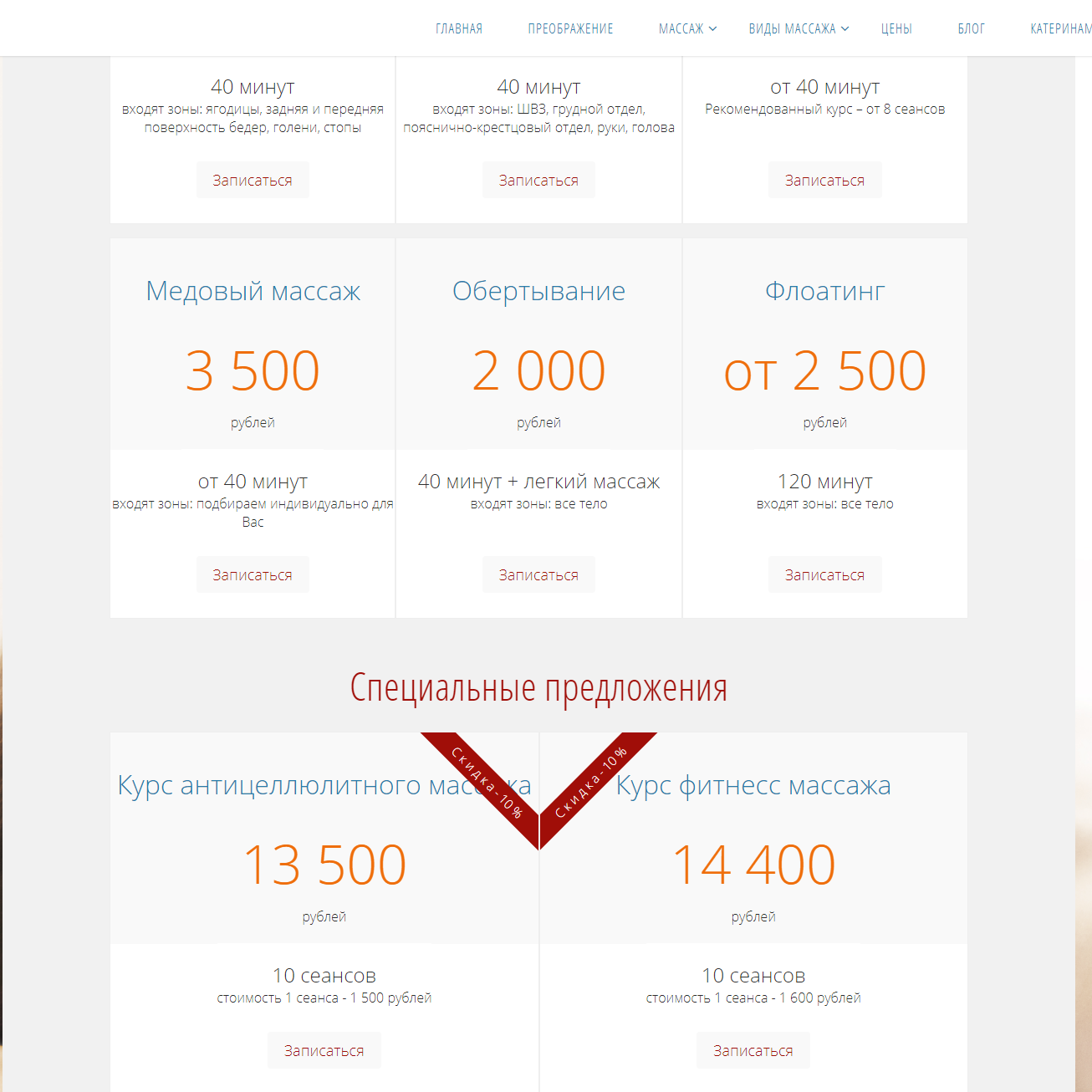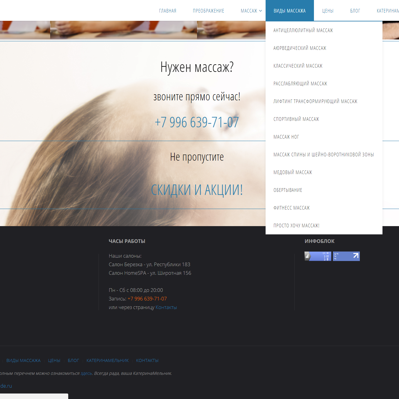 Простой проект на html с большим количеством страниц (описанием видов массажа), прайса и т.д.